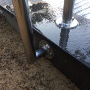 Tweedelige RVS trap met aangepaste beugels op de badrand.