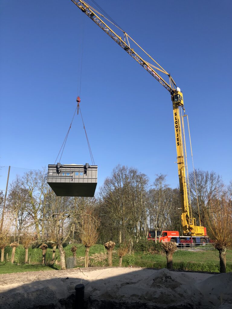Bouwkundige rechte hoektrap met 3 treden, geplaatst tegen HDPE nis
