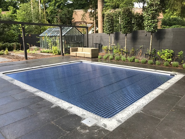 Polycarbonaat solar lamellenafdekking weg gewerkt in een nis in het bad.