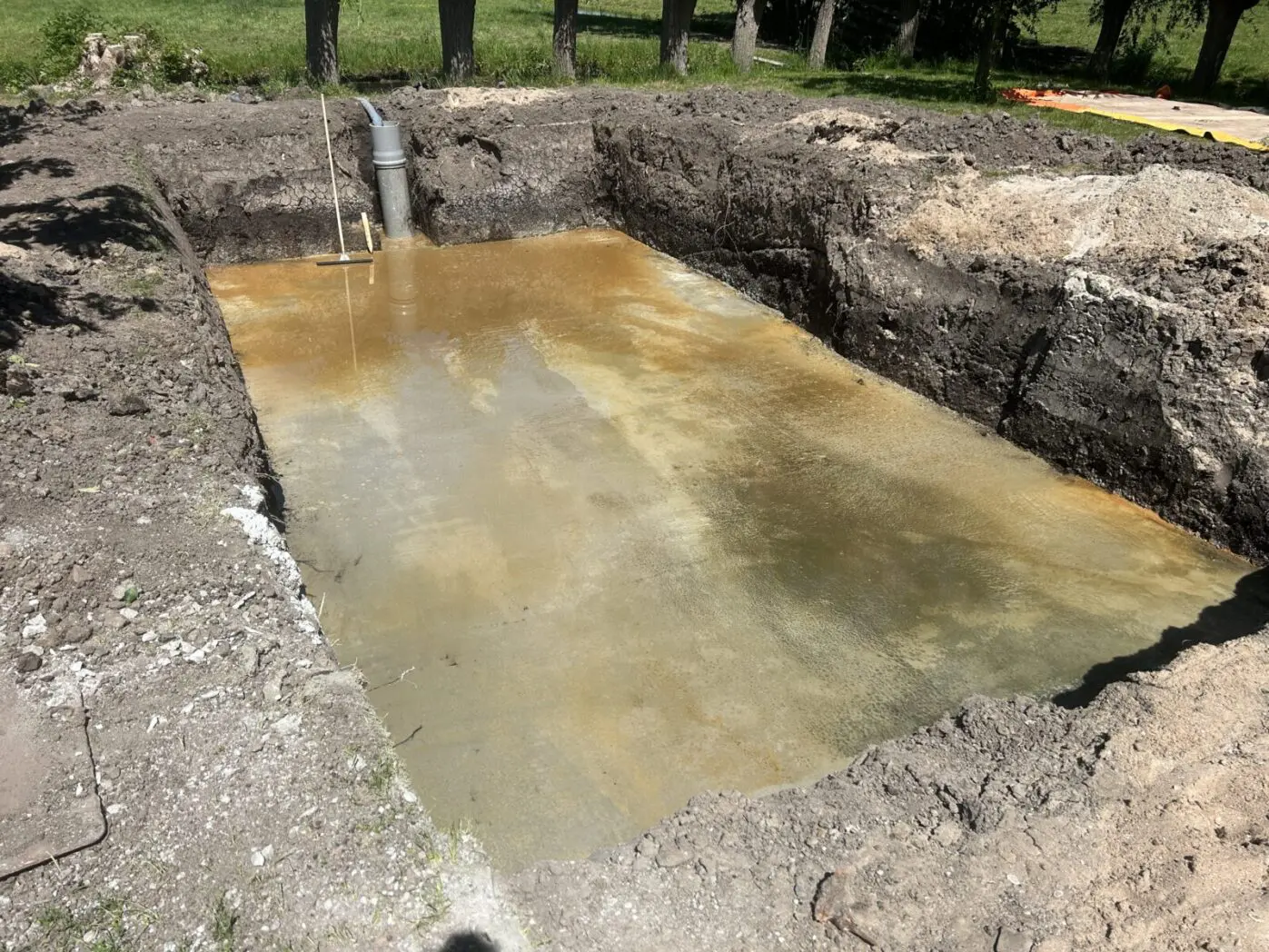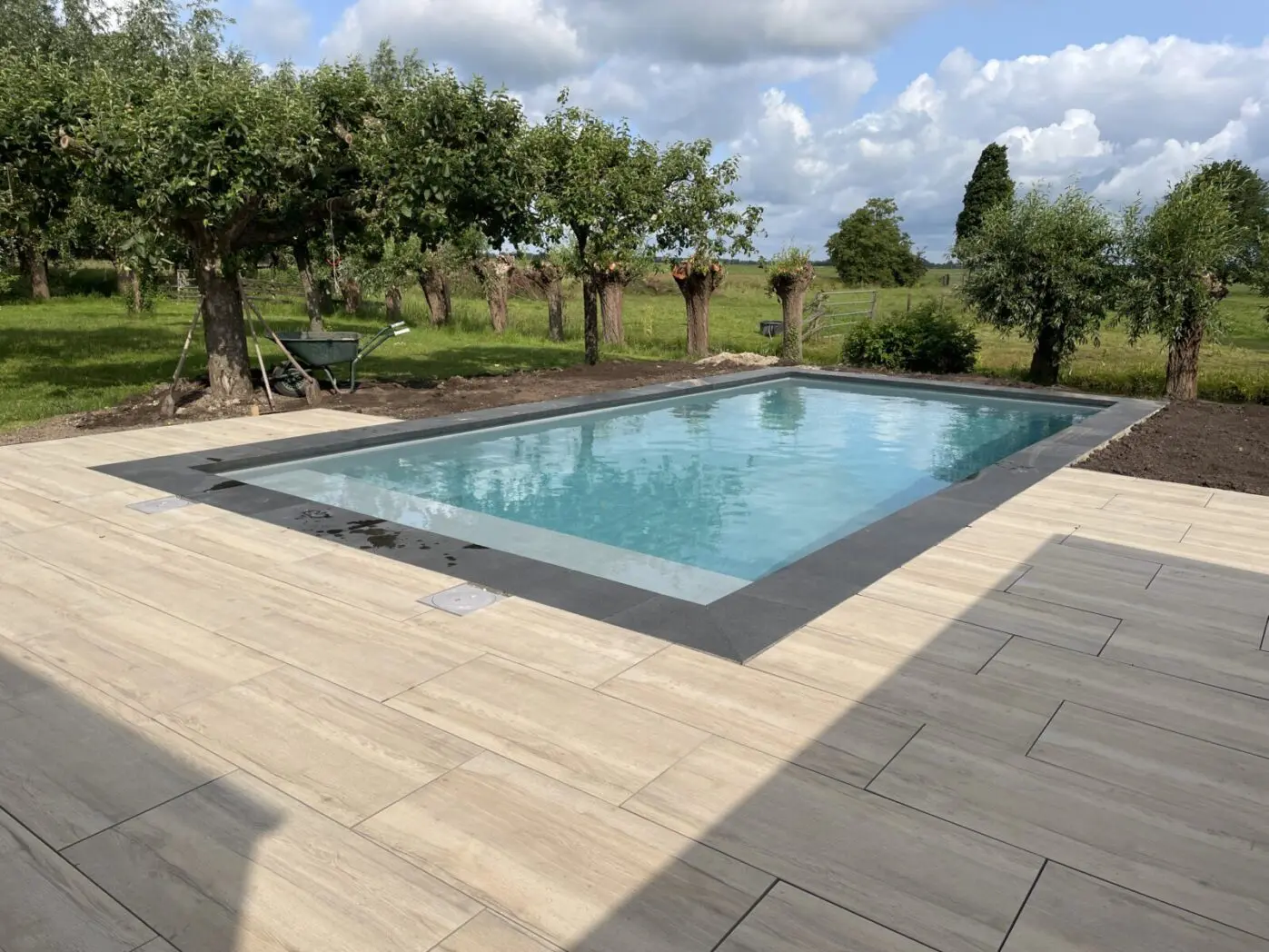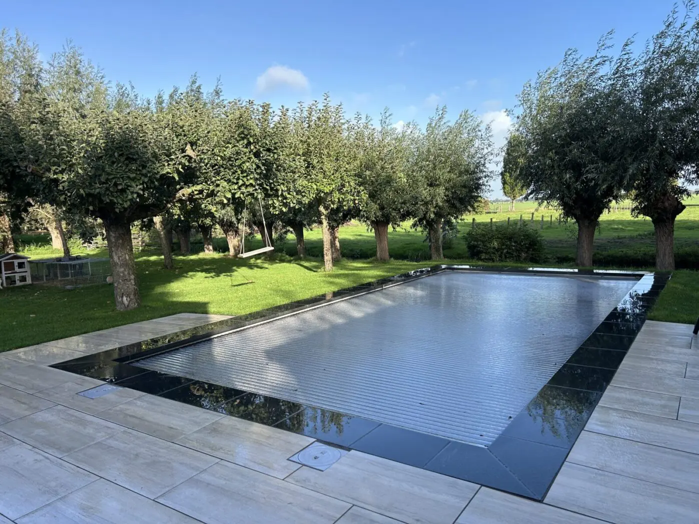 Kunststof HDPE rechte hoektrap met 3 treden, geplaatst tegen HDPE nis/plage, welke tevens dient als 1e trede van de trap